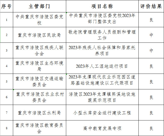 • 涪陵區2024年預算績效管理重點績效評價結果