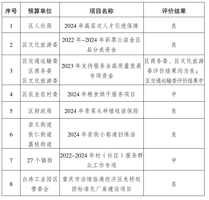 • 涪陵區2025年預算績效管理重點績效評價結果