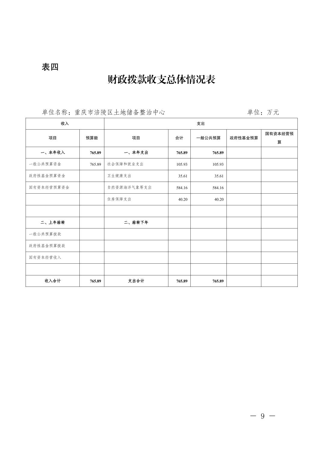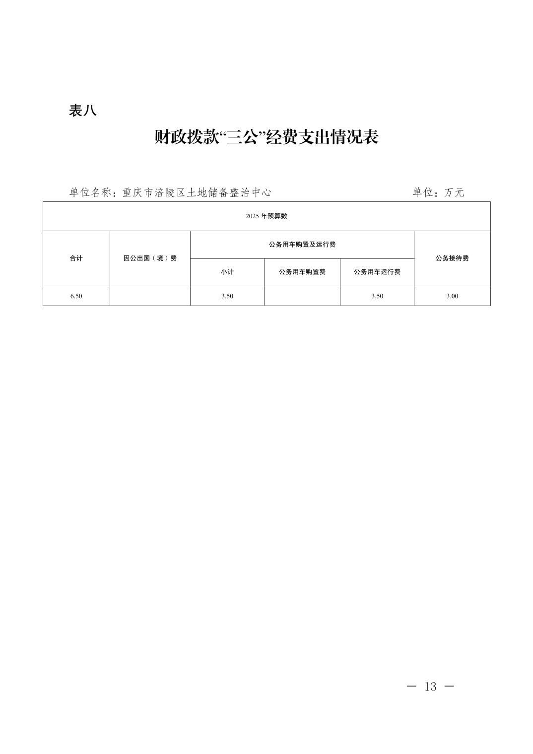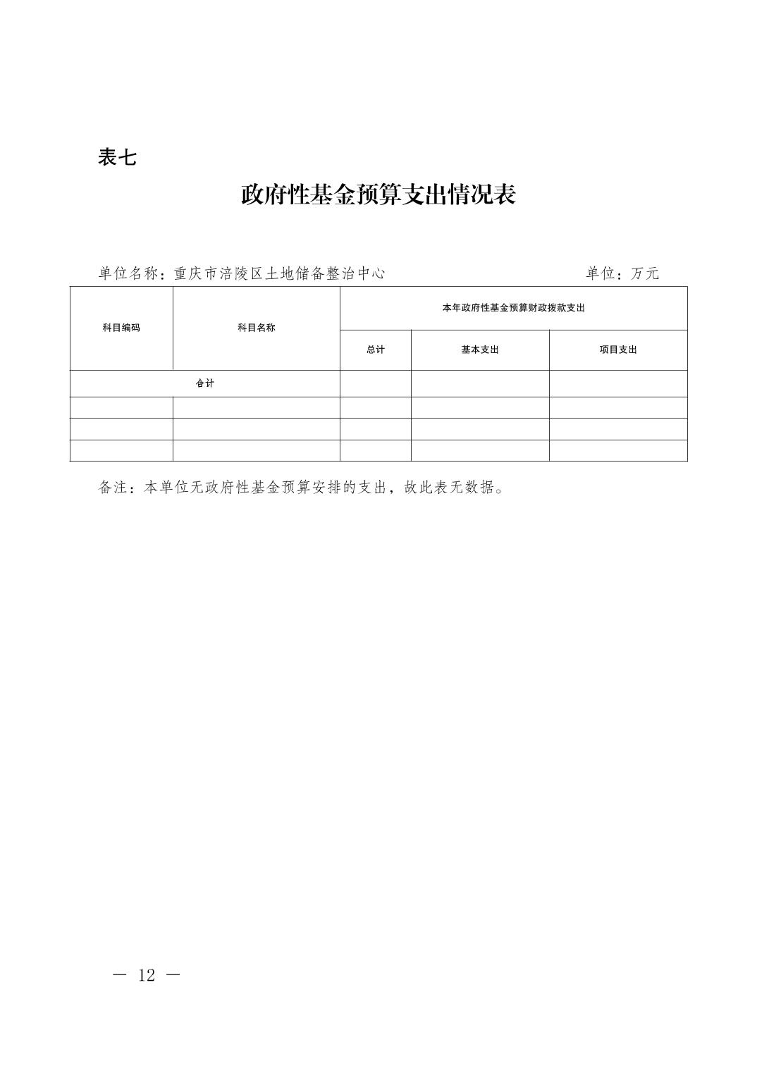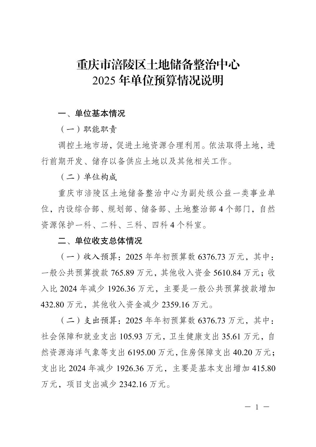重慶市涪陵區土地儲備整治中心2025年單位預算情況說明