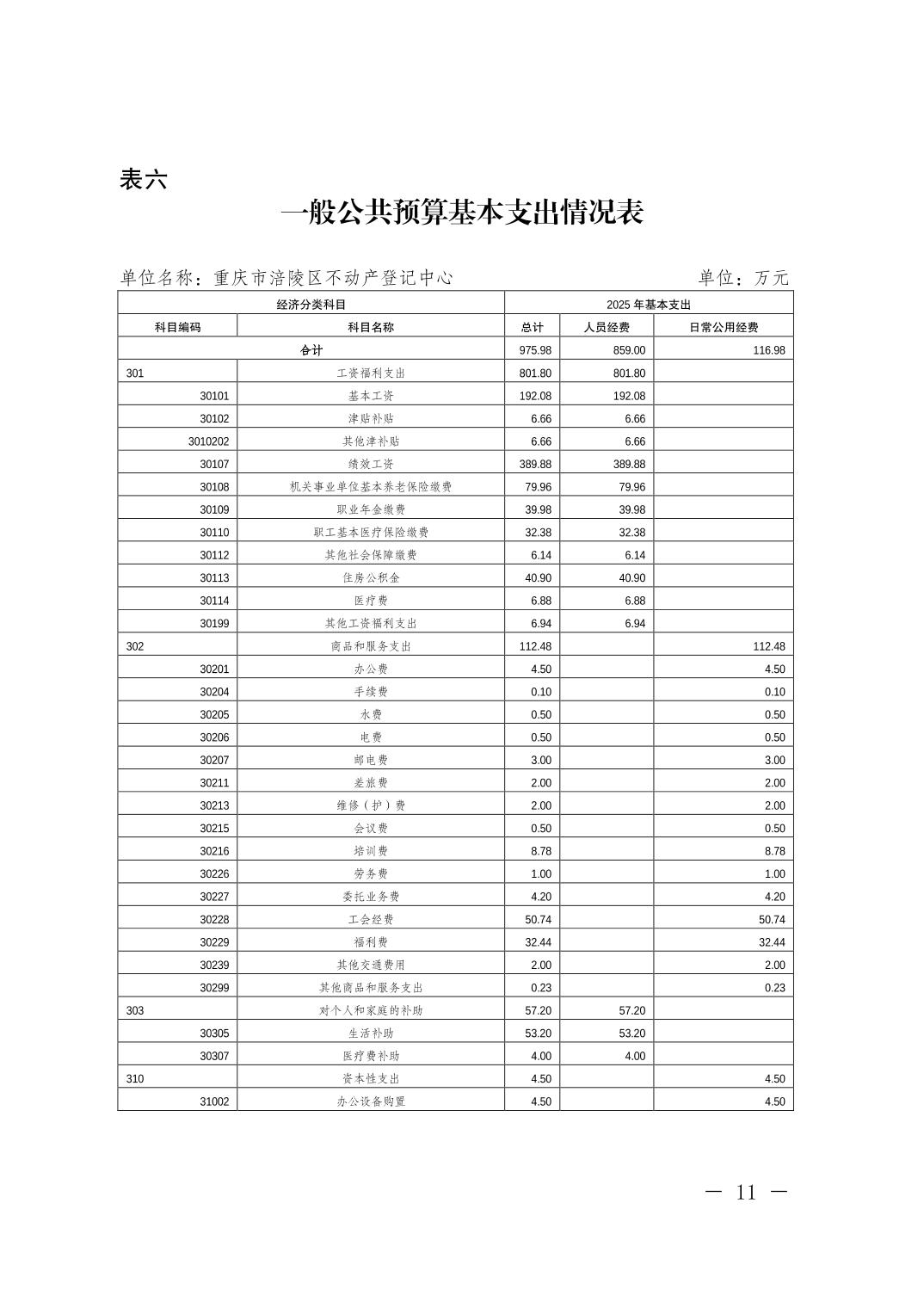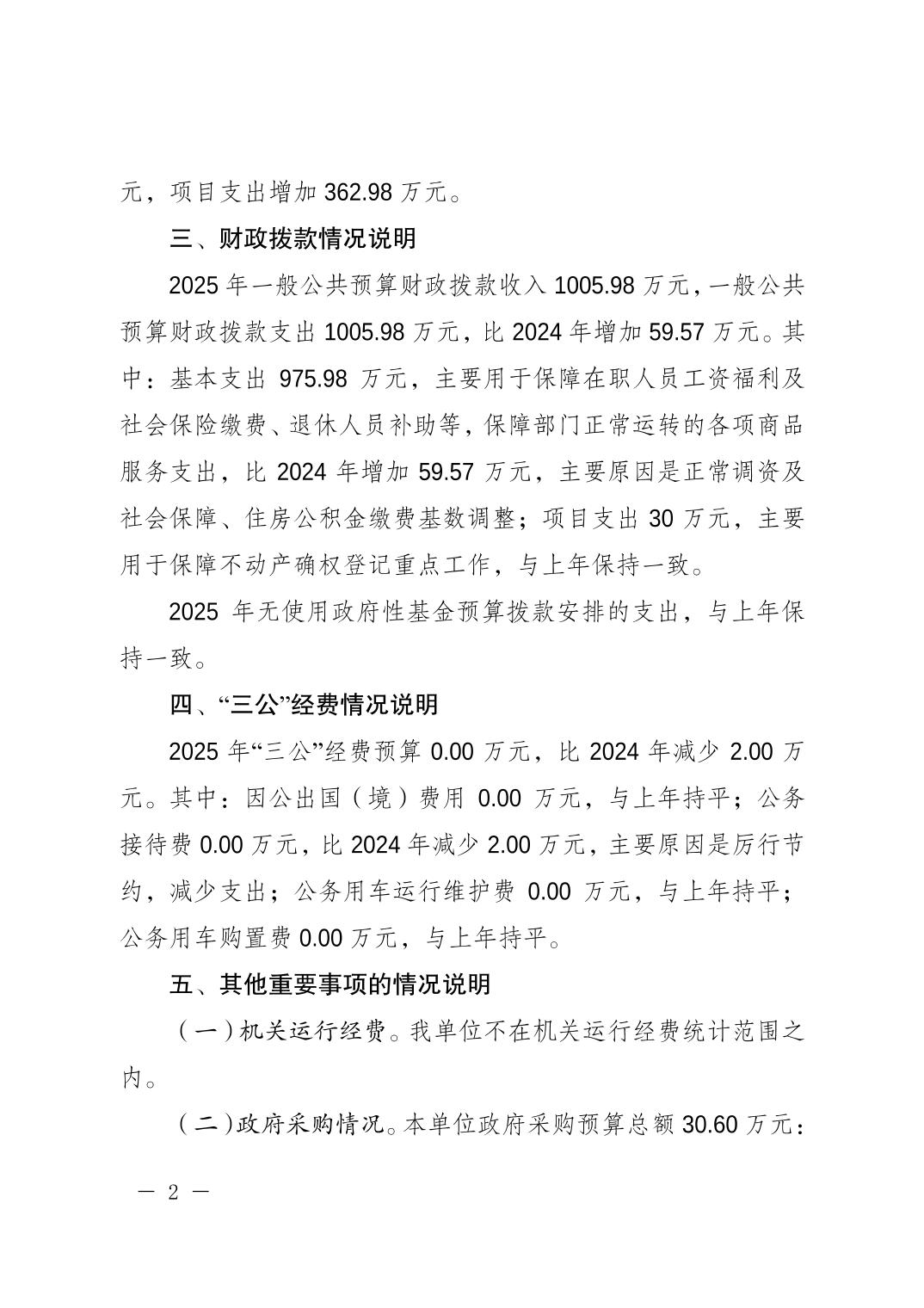 重慶市涪陵區(qū)不動產(chǎn)登記中心2025年單位預(yù)算情況說明