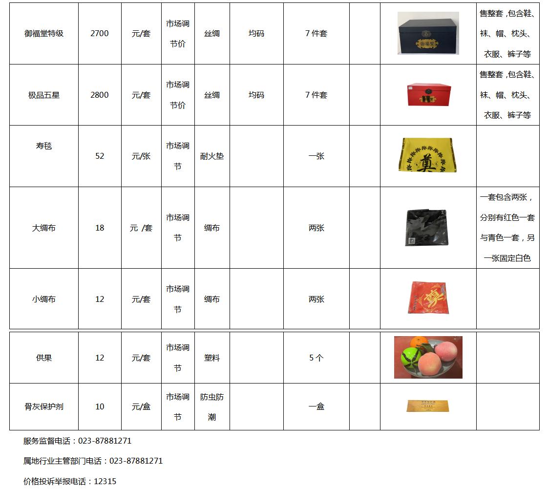 重慶市涪陵區吉利殯儀服務有限責任公司(殯儀館)收費標準集中公示