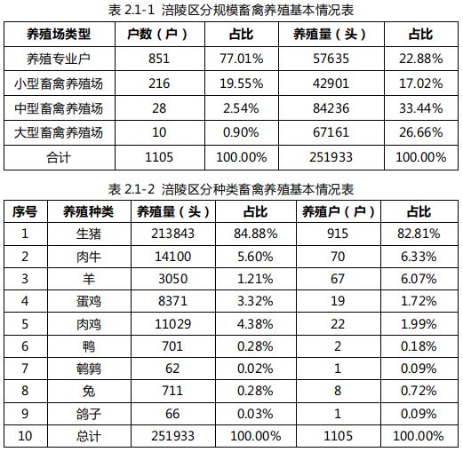統籌考慮涪陵區畜牧業發展的土地承載能力以及畜禽養殖污染防治要求,嚴格落實畜禽養殖環評制度,依法依規開展環境影響評價,嚴把規?;笄蒺B殖場準入關,以畜禽養殖糞污綜合利用、糞污消納用地配套、糞污收集處理設施配備、項目選址對水、大氣、土壤環境產生的影響為重點,要求年出欄生豬5000頭及以上、存欄生豬2500頭(其他畜禽種類折合生豬的養殖量)及以上,或涉及環境敏感區的規?;笄蒺B殖項目編制環境影響評價報告書,其余填報備案登記表。