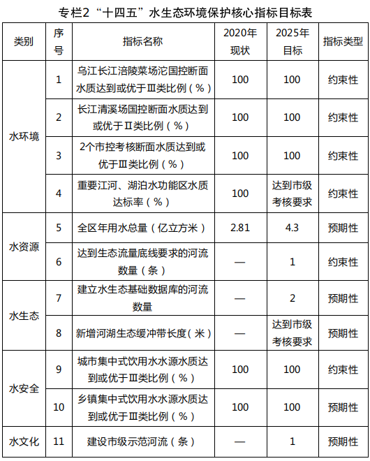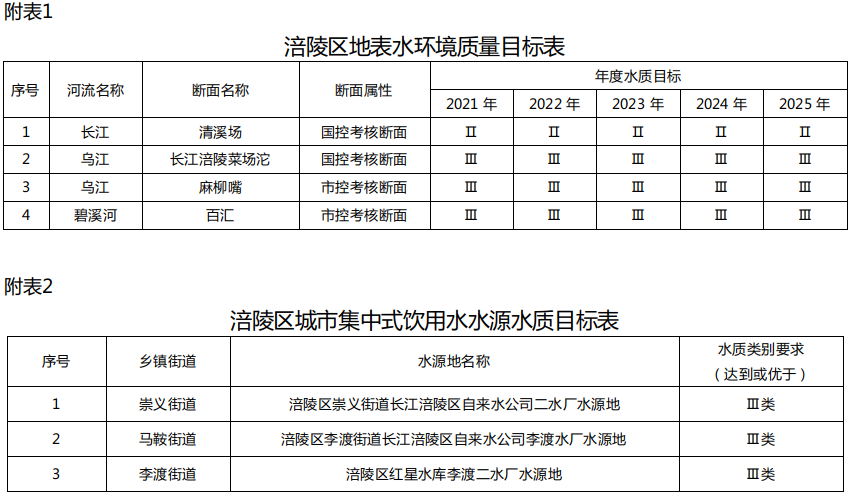 水環境質量持續改善。到2025年,全區水質總體保持優良,長江干流清溪場國控斷面水質持續保持為Ⅱ類,烏江長江涪陵菜場沱國控斷面水質達到或優于Ⅲ類比例穩定保持100%,2個市控考核斷面水質達到或優于Ⅲ類比例穩定保持100%;全區市控斷面劣Ⅴ類水體比例為0;重要江河、湖泊水功能區水質達標率達到市級考核要求,城市建成區內無黑臭水體。