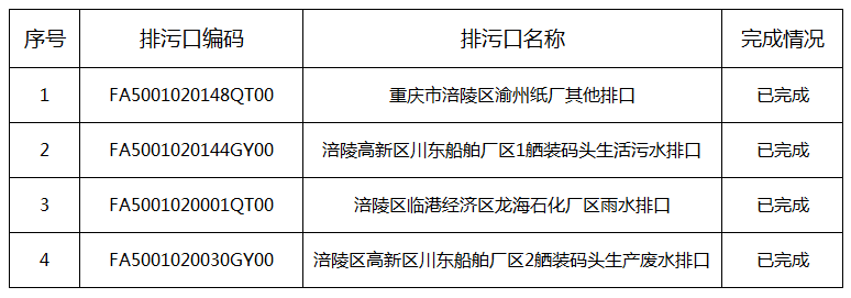 重慶市涪陵區入河排污口整治銷號公示表(第七批銷號清單)