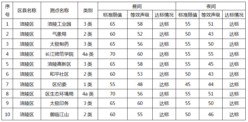 涪陵區2025年二季度環境噪聲