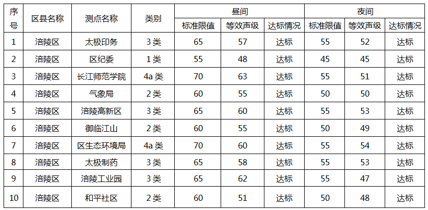 涪陵區2025年三季度環境噪聲
