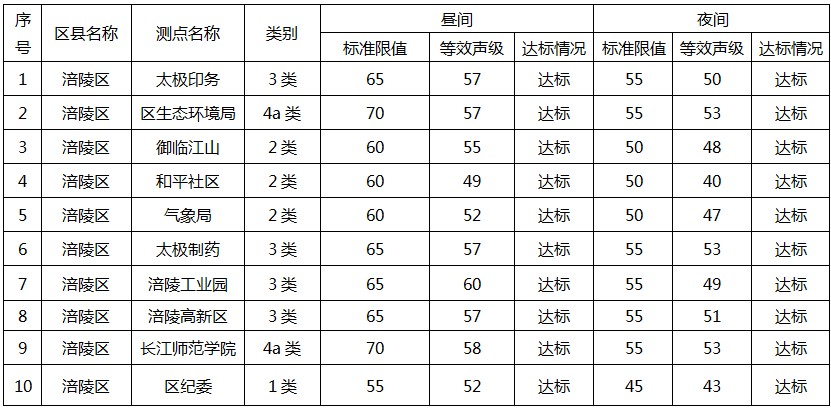 涪陵區2025年四季度環境噪聲