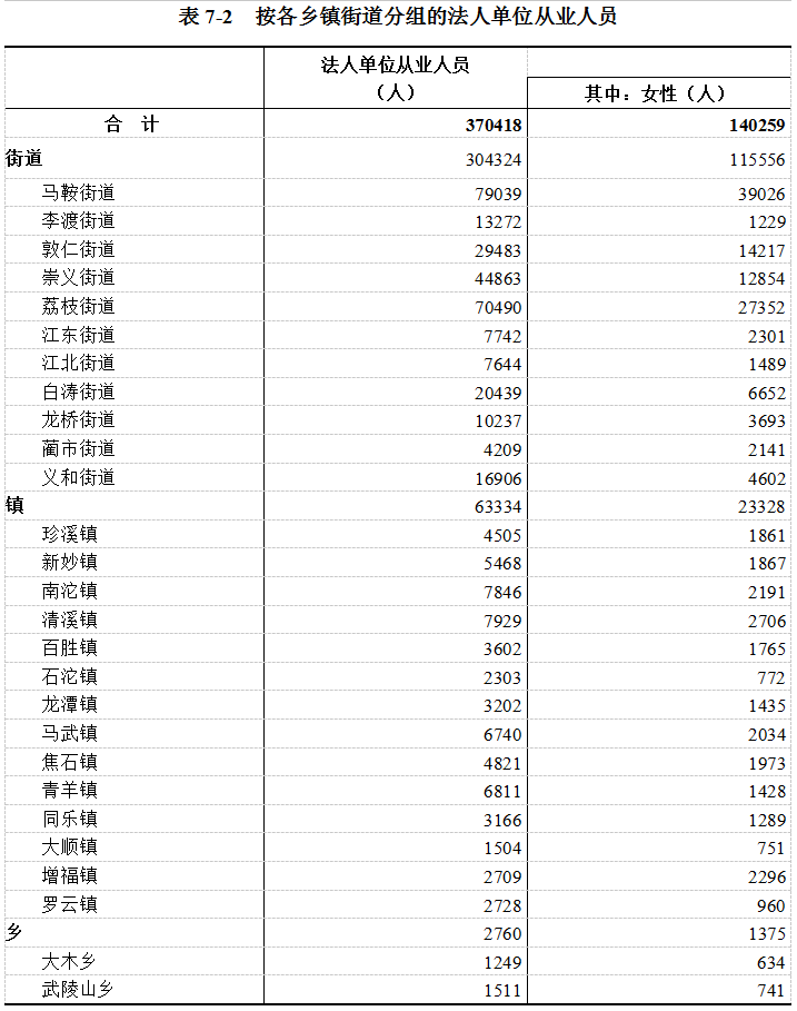 按鄉(xiāng)鎮(zhèn)街道分組的單位情況詳見表7-1。