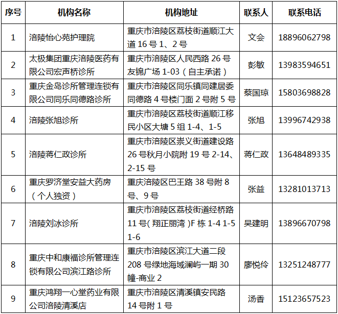 涪陵區(qū)2024年第三批新增醫(yī)療保障定點醫(yī)藥機構(gòu)名單