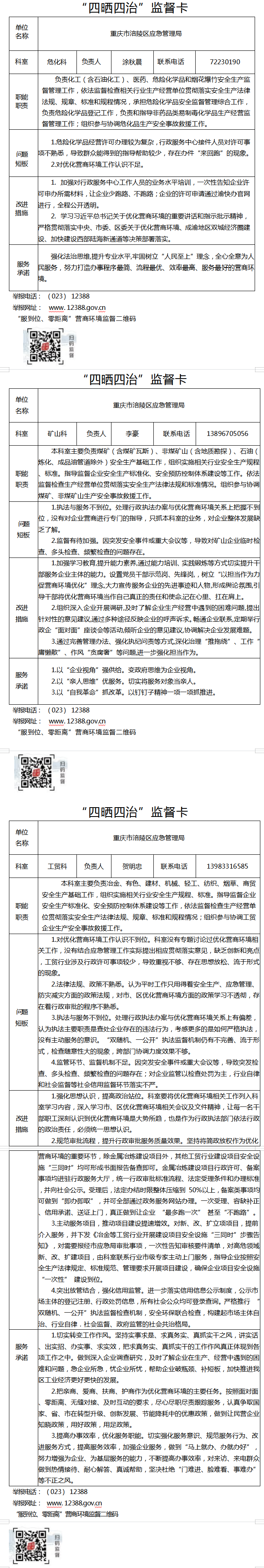 重慶市涪陵區(qū)應急管理局“四曬四治”監(jiān)督卡