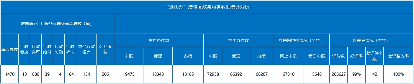 “渝快辦”涪陵區(qū)政務(wù)服務(wù)數(shù)據(jù)統(tǒng)計(jì)分析