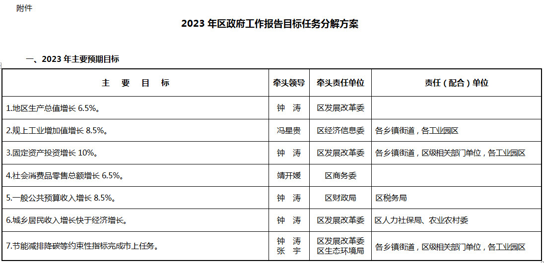 答:2023年涪陵區(qū)政府工作報告目標(biāo)任務(wù)分解方案內(nèi)容詳見附件表格。
