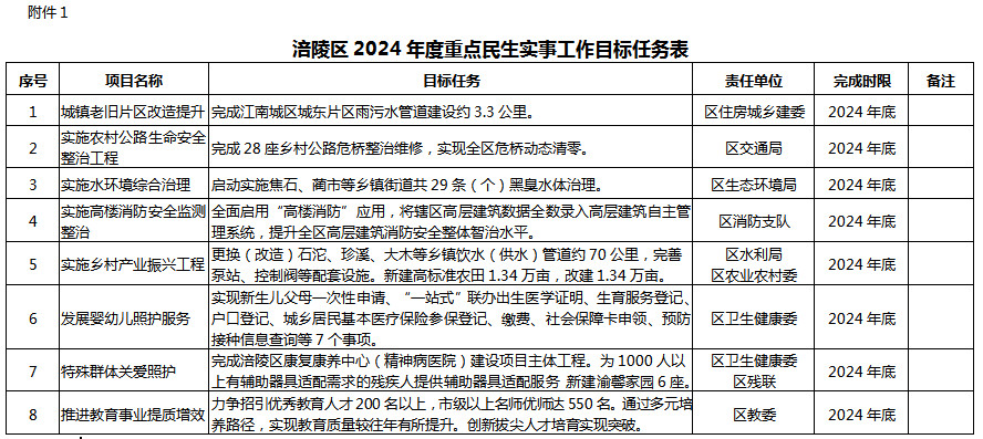1.涪陵區(qū)2024年度重點(diǎn)民生實(shí)事工作目標(biāo)任務(wù)表