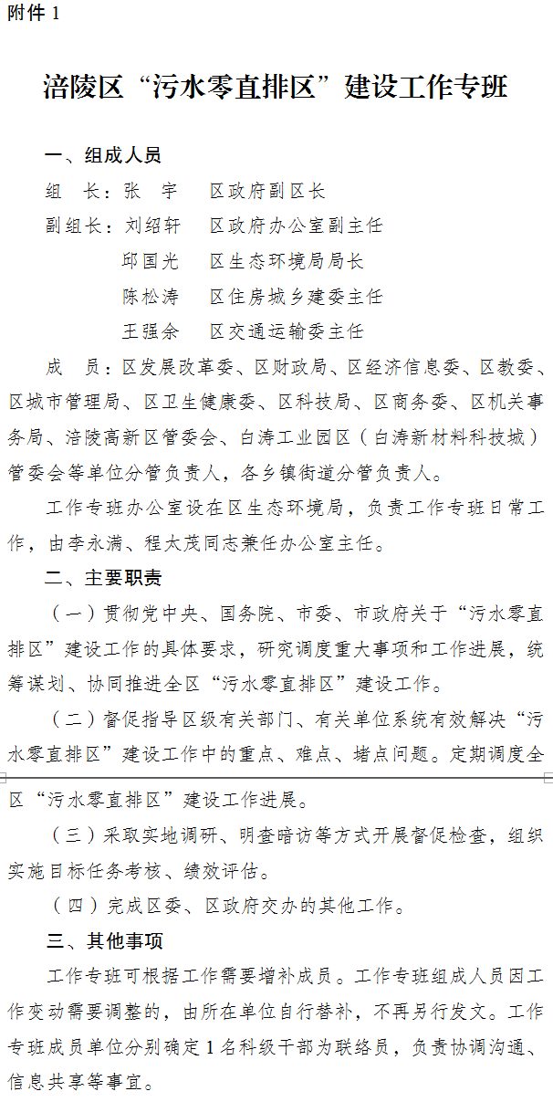 1.涪陵區“污水零直排區”建設工作專班
