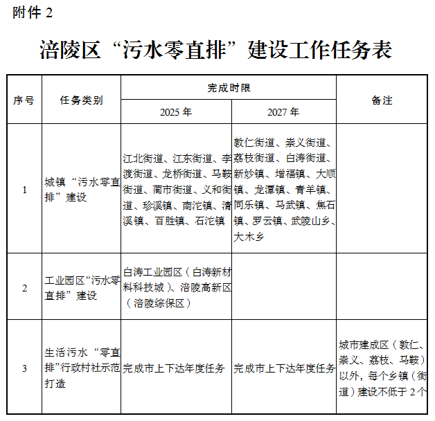 2.涪陵區“污水零直排”建設工作任務表