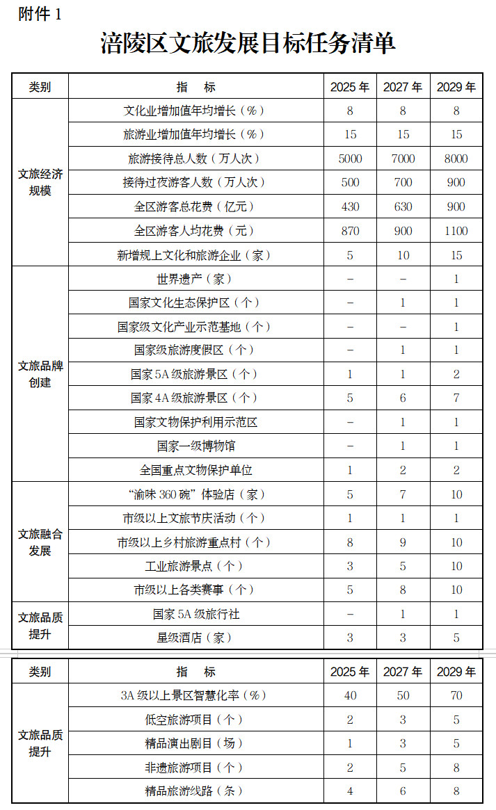 附件:1.涪陵區文旅發展目標任務清單