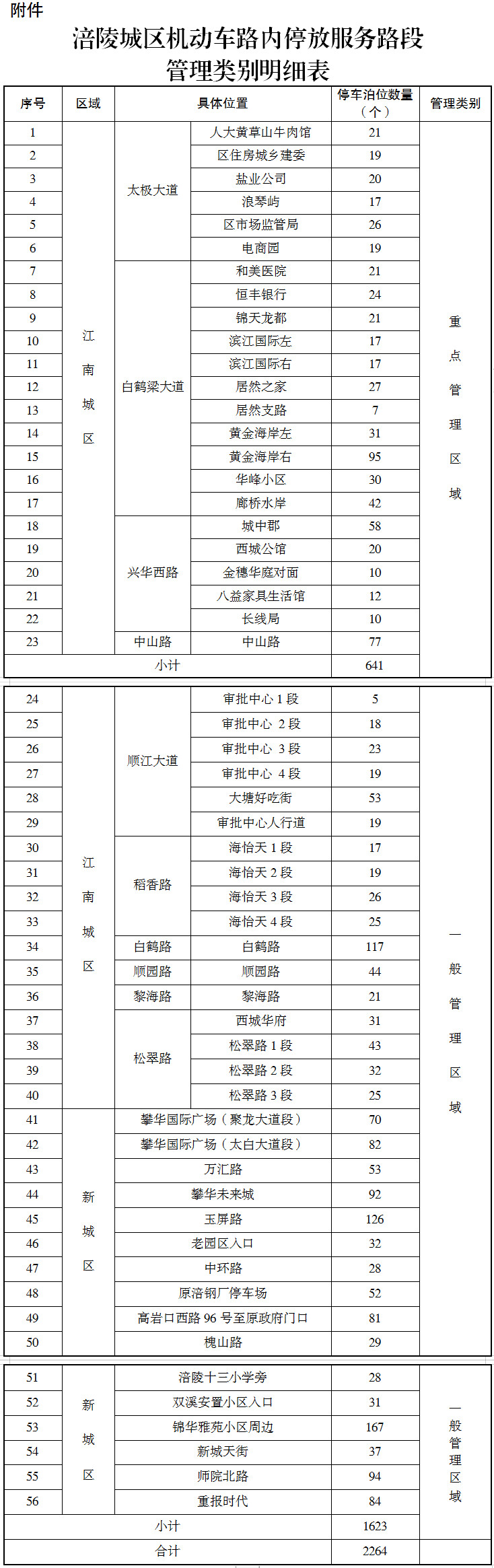 附件:涪陵城區(qū)機(jī)動(dòng)車路內(nèi)停放服務(wù)路段管理類別明細(xì)表
