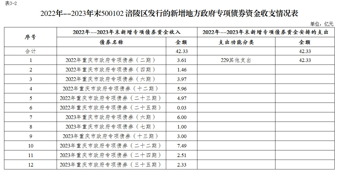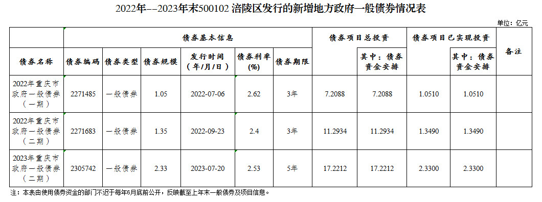 涪陵區(qū)2022—2023年政府債券存續(xù)期信息公開(kāi)