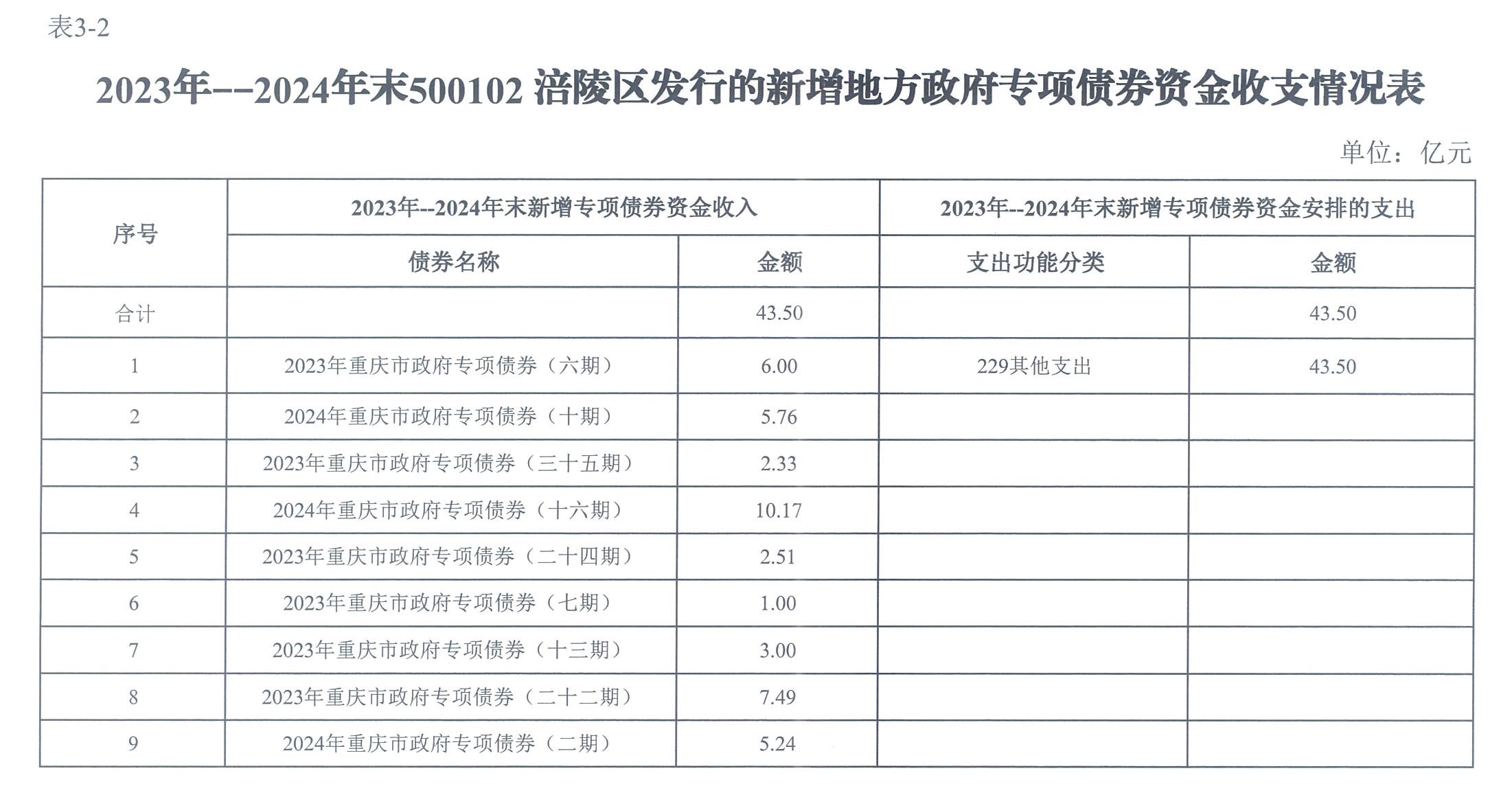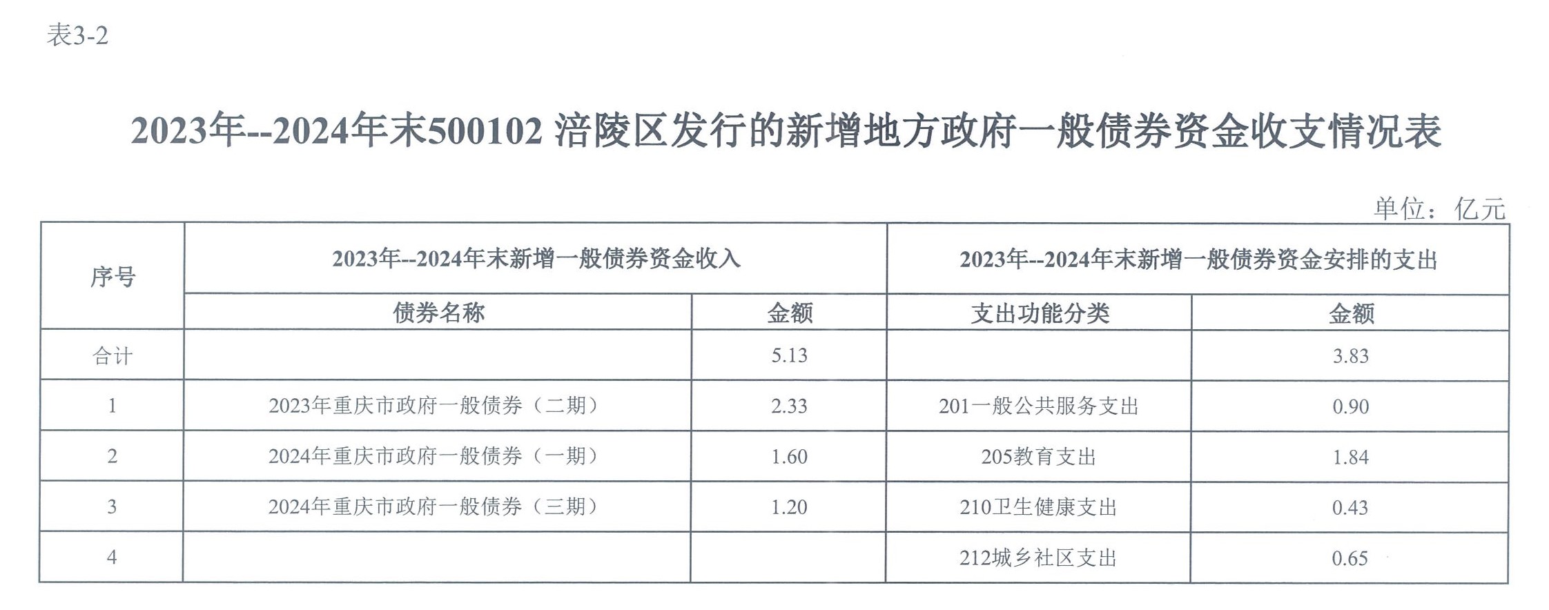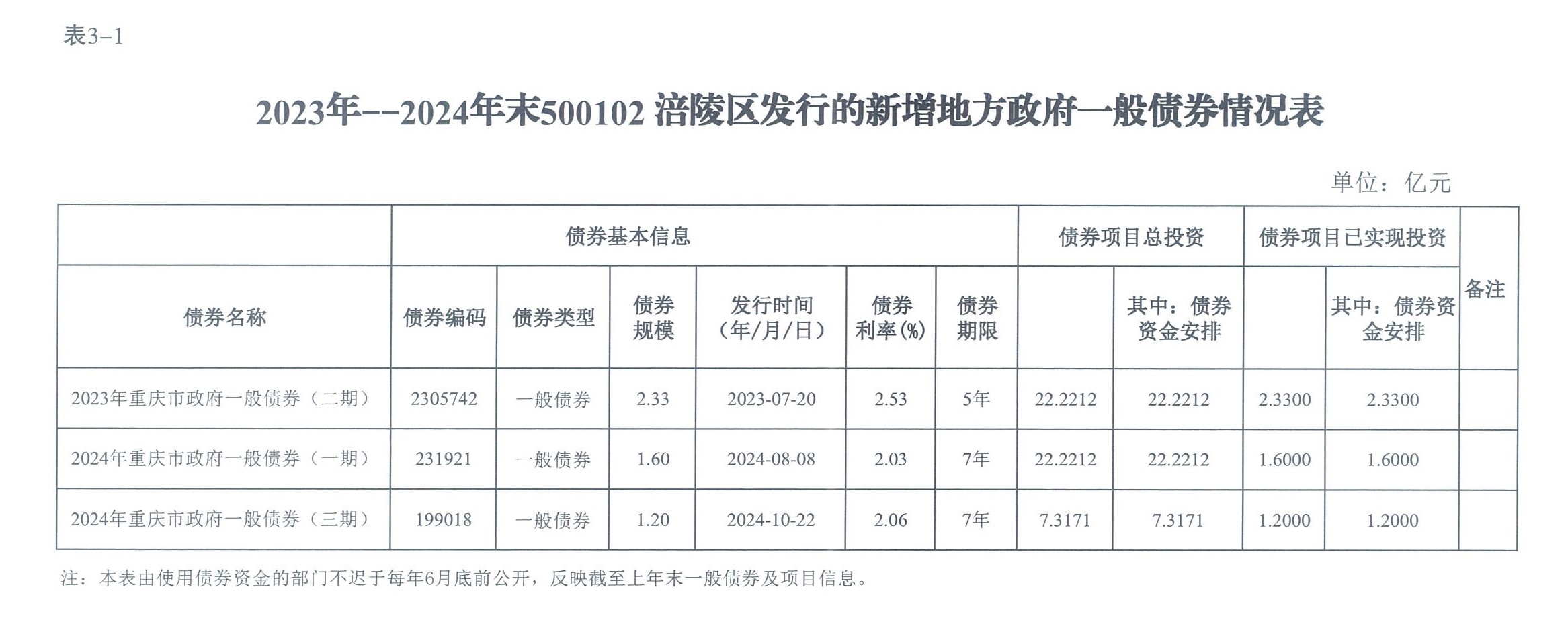 涪陵區2023—2024年政府債券存續期信息公開