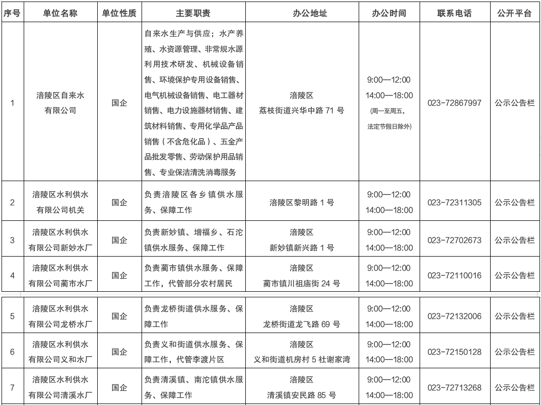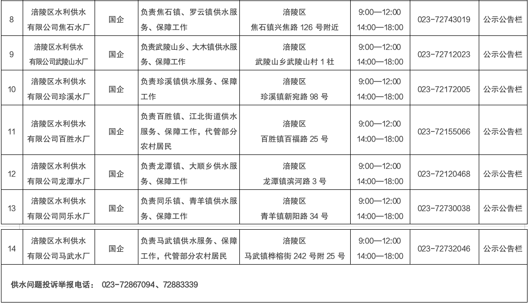 涪陵區城鄉供水企業信息表