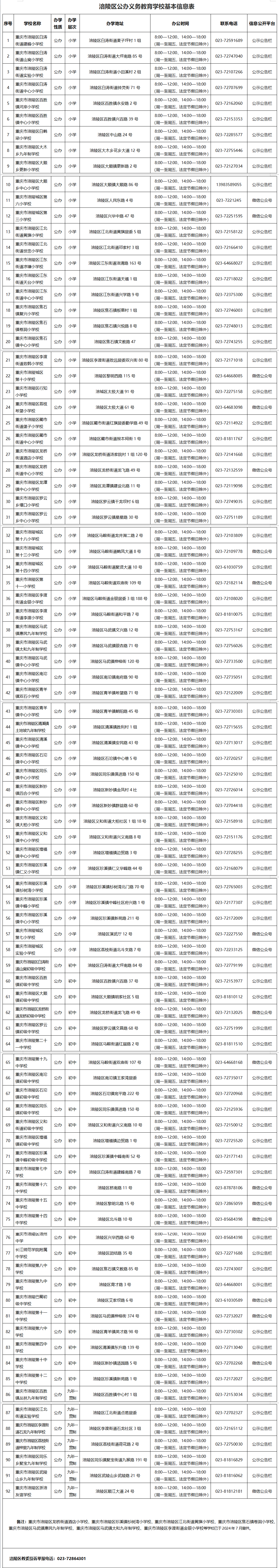 涪陵區(qū)公辦義務(wù)教育學(xué)校信息表