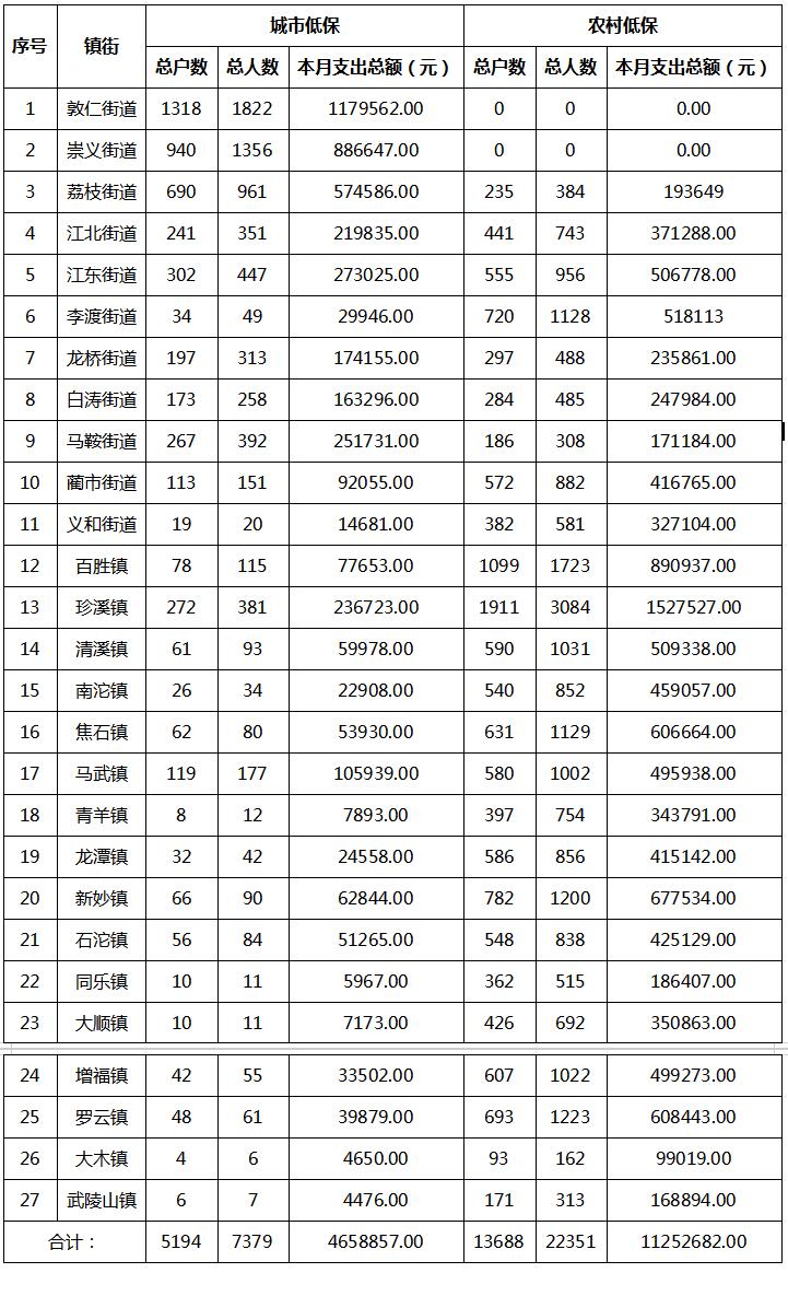 2025年11月涪陵區(qū)城鄉(xiāng)居民最低生活保障金發(fā)放匯總表