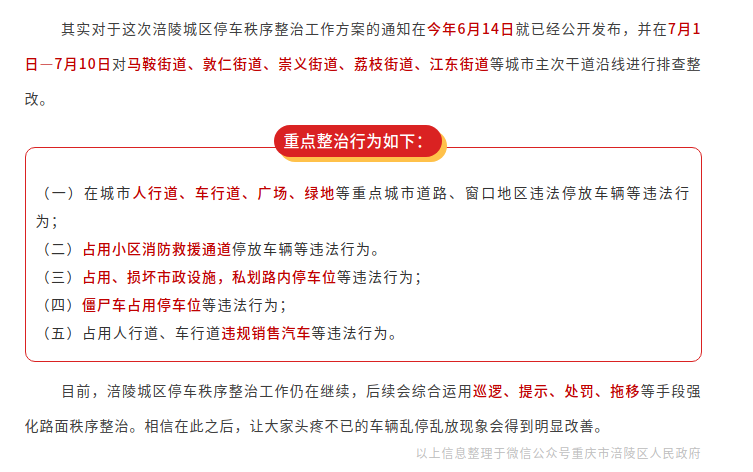 媒體解讀 |嚴打整治!涪陵開展城區停車秩序整治工作
