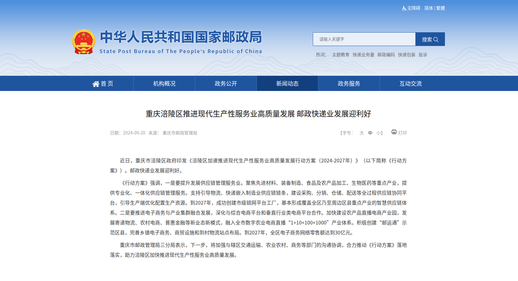 媒體解讀 | 重慶涪陵推進現代生產性服務業高質量發展 郵政快遞業發展迎利好
