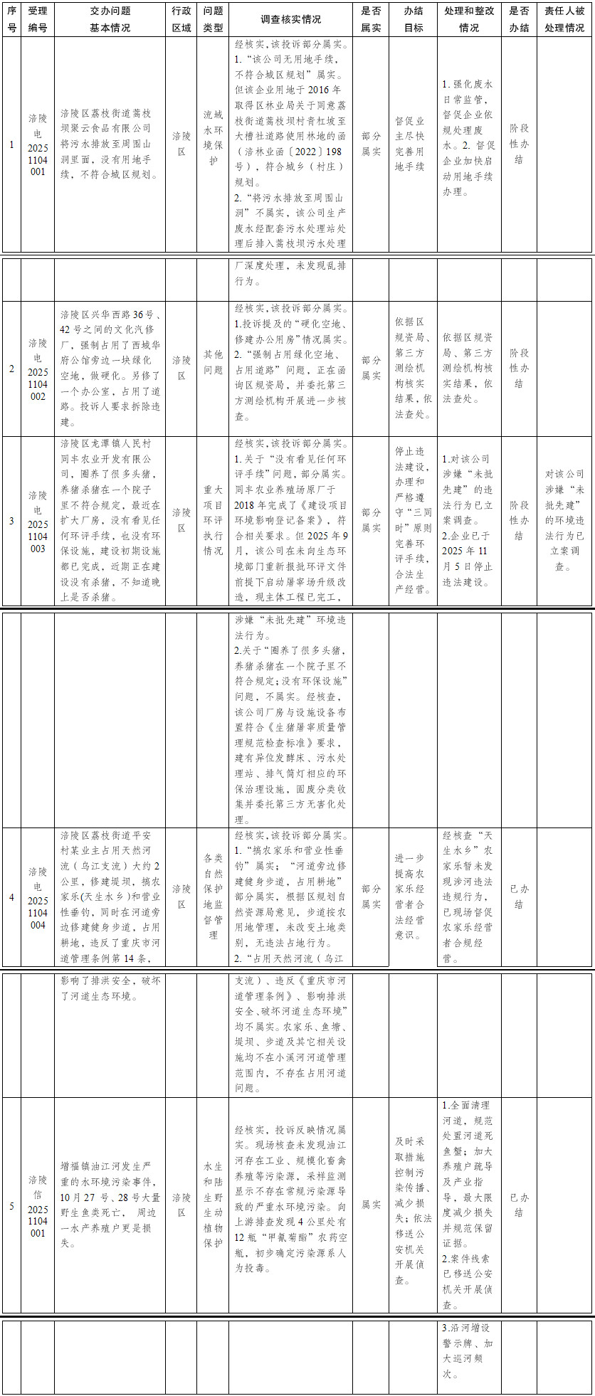 重慶市第二輪第三批第四生態環境保護督察組群眾信訪舉報轉辦和邊督邊改公開情況一覽表 (第8批 2025年11月4日)