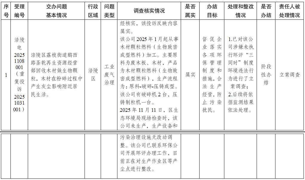 重慶市第二輪第三批第四生態(tài)環(huán)境保護(hù)督察組群眾信訪舉報(bào)轉(zhuǎn)辦和邊督邊改公開(kāi)情況一覽表 (第11批 2025年11月8日)