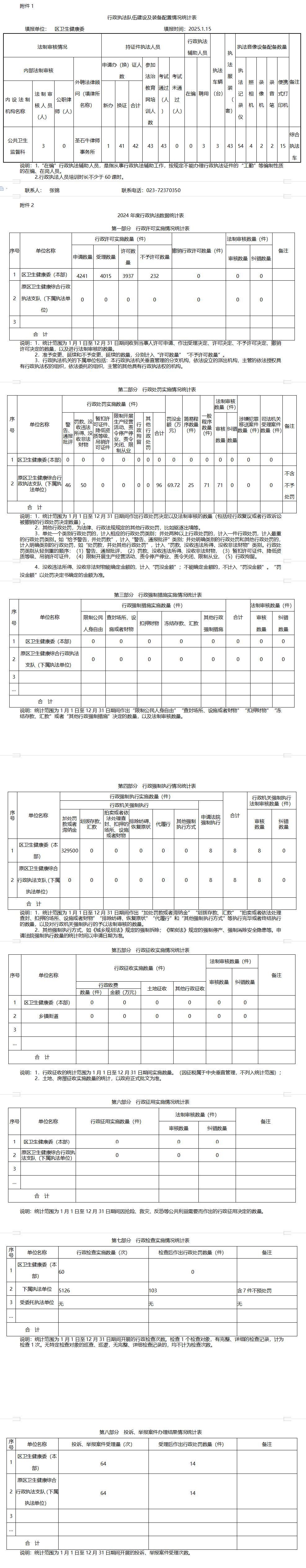涪陵區區衛生健康委2024年執法數據公示