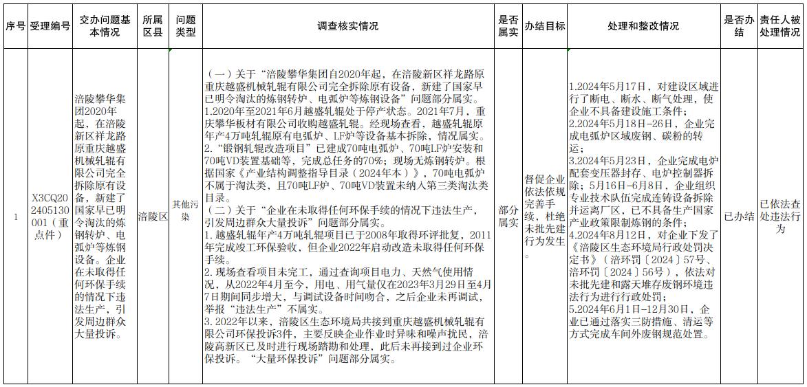 中央生態環境保護督察組群眾信訪舉報辦理情況公開表(第七批)