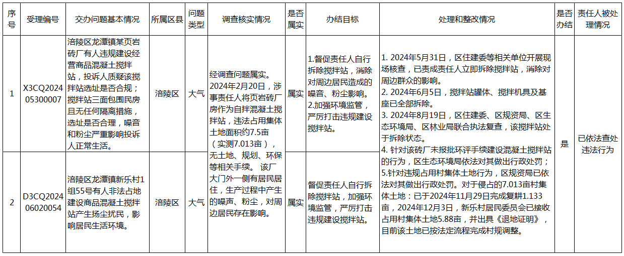 中央生態環境保護督察組群眾信訪舉報辦理情況公開表(第八批)