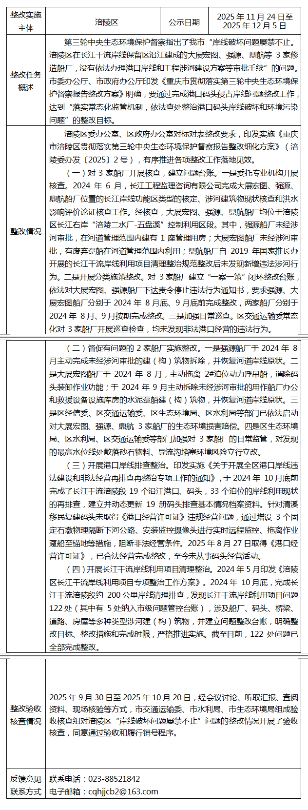 中央生態環境保護督察整改驗收銷號公示表(“岸線破壞問題屢禁不止”問題)